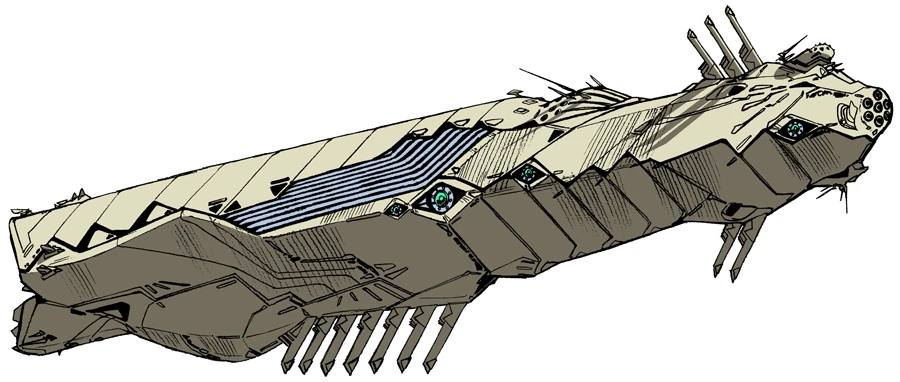 As the primary transport carrier for the Varauta Army, the Large Battroid Transport Carrier is somewhat deceptively named in contrast to it's ubiquitous deployment. Though it transports Battroids, the Transport Carrier can also operate as a support carrier for launching fighters (with many linear catapults) and features fighter command and control equipment. The Transport Carrier also possesses powerful weaponry and heavy armor that allows the ship to engage other warships in combat. In a transport role, the Large Battroid Transport Carrier can hold up to a hundred vehicles stowed in the cargo bays.