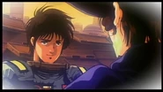 Hikaru flew low in the ruins of Macross City. While crying, she noticed that her hair was ruined. Hikaru asked her what was more important, her hair or her life? She jokingly replied that it was her hair and they both laughed. They then screamed as VT-102 was about to crash into a Regult. Hikaru activated the thrusters to brake and passed through the legs of the Regult before tumbling over, as VT-102 got up, Hikaru noticed that she was unconscious and Hikaru panicked.