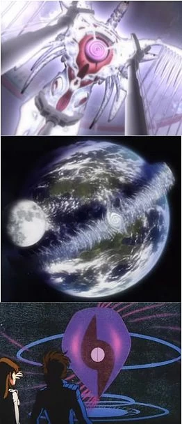 Different Protoculture technology in Macross. The "Bird Human" Protoculture biomecha from Macross Zero, the "Protoculture Planet" from Macross Frontier and the "Protoculture Mainframe" from Macross: Do You Remember Love?.
