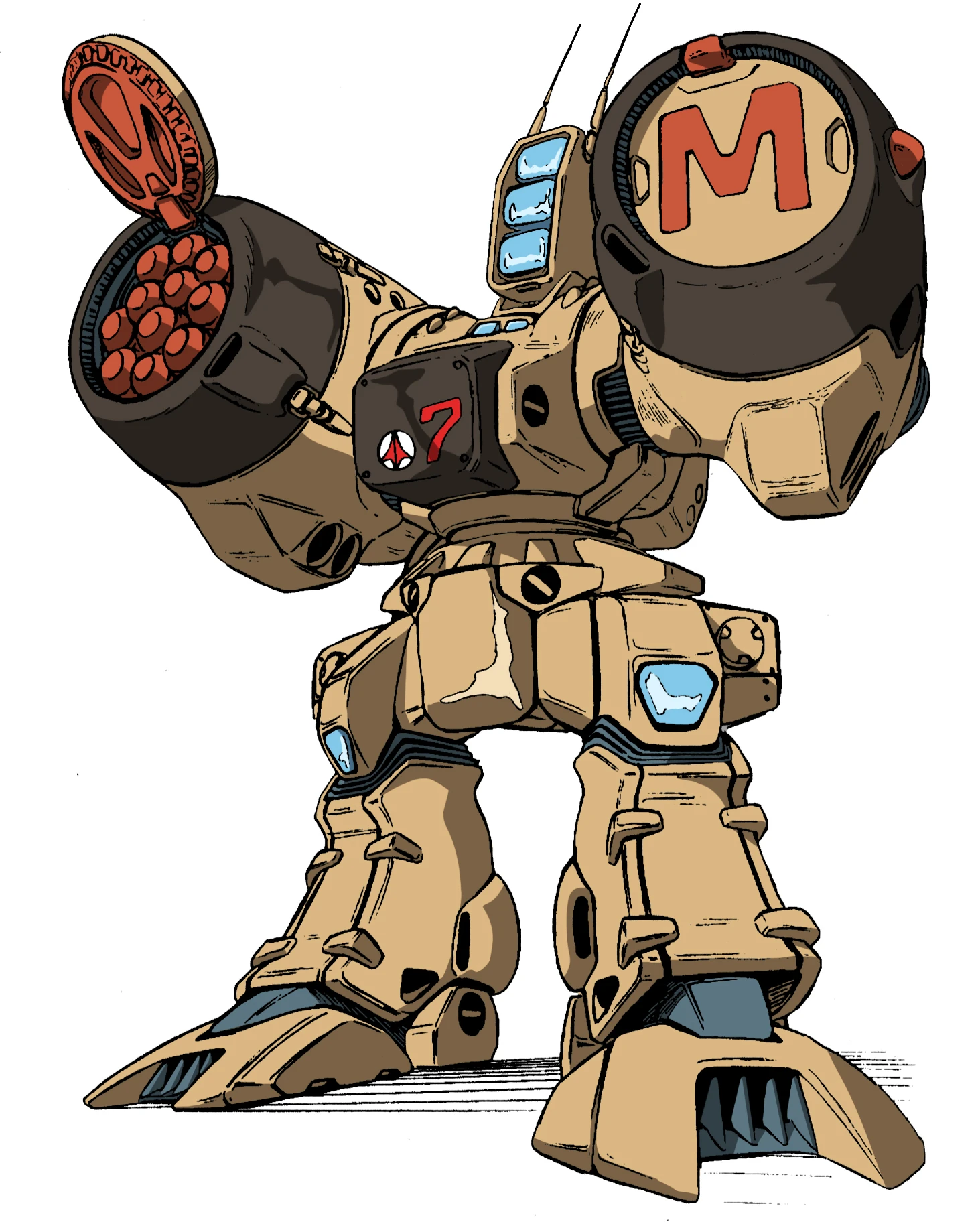 The newly designed body for the Phalanx was hastily built by combining replacement/repair parts for the MBR-04-Mk.VI Destroid Tomahawk (already loaded onboard the SLV-111 Daedalus) with a simple upper body core structure that neglected any silliness for a weapon composition consisting of missiles, radar, and propulsion system mounted on the main rotating body.