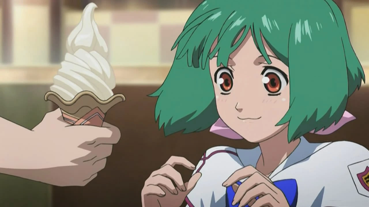 Mikhail tries to make Ranka understand why Ozma fights but fails. He dares Ranka to sing out loud. At first, she considers it not to be a problem as she sang at Miss Macross Frontier but now, no one really intends hear her sing, Mikhail asks if she noticed the macronized Zentradi singing at the mall's entrance.